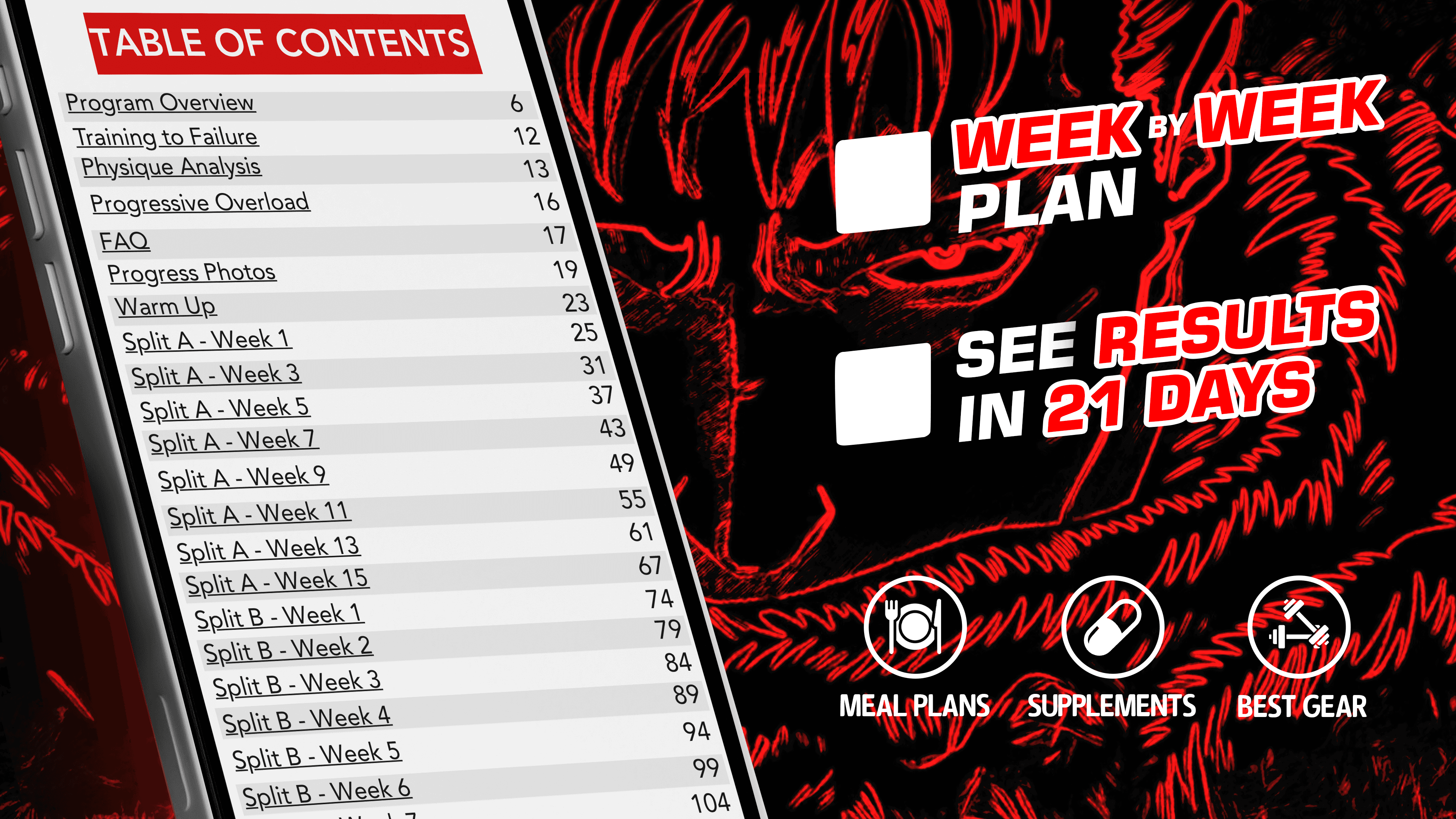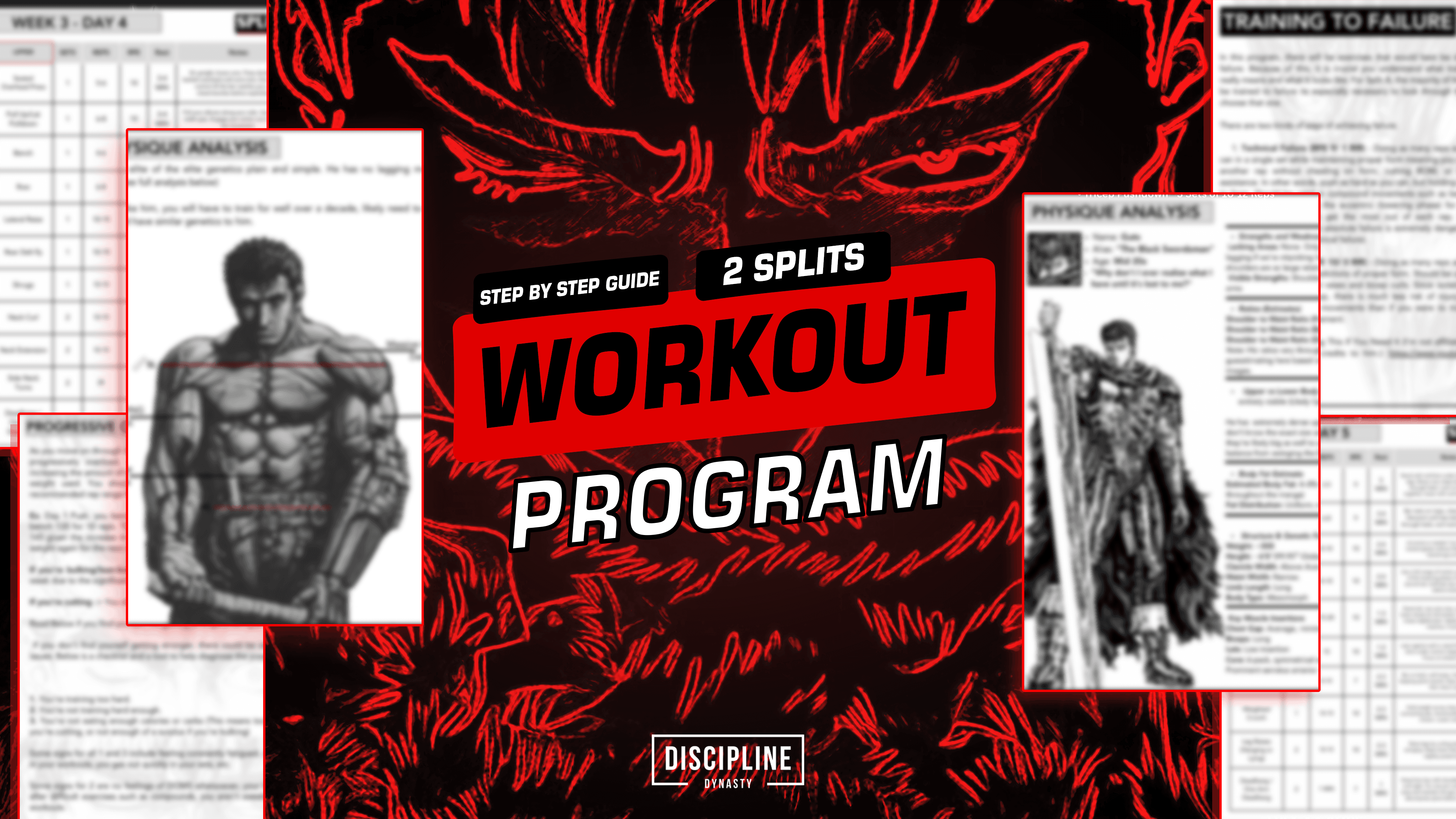 A step-by-step 8 week training system built to forge Guts’ dense, battle-hardened physique through relentless progression and brutal simplicity.