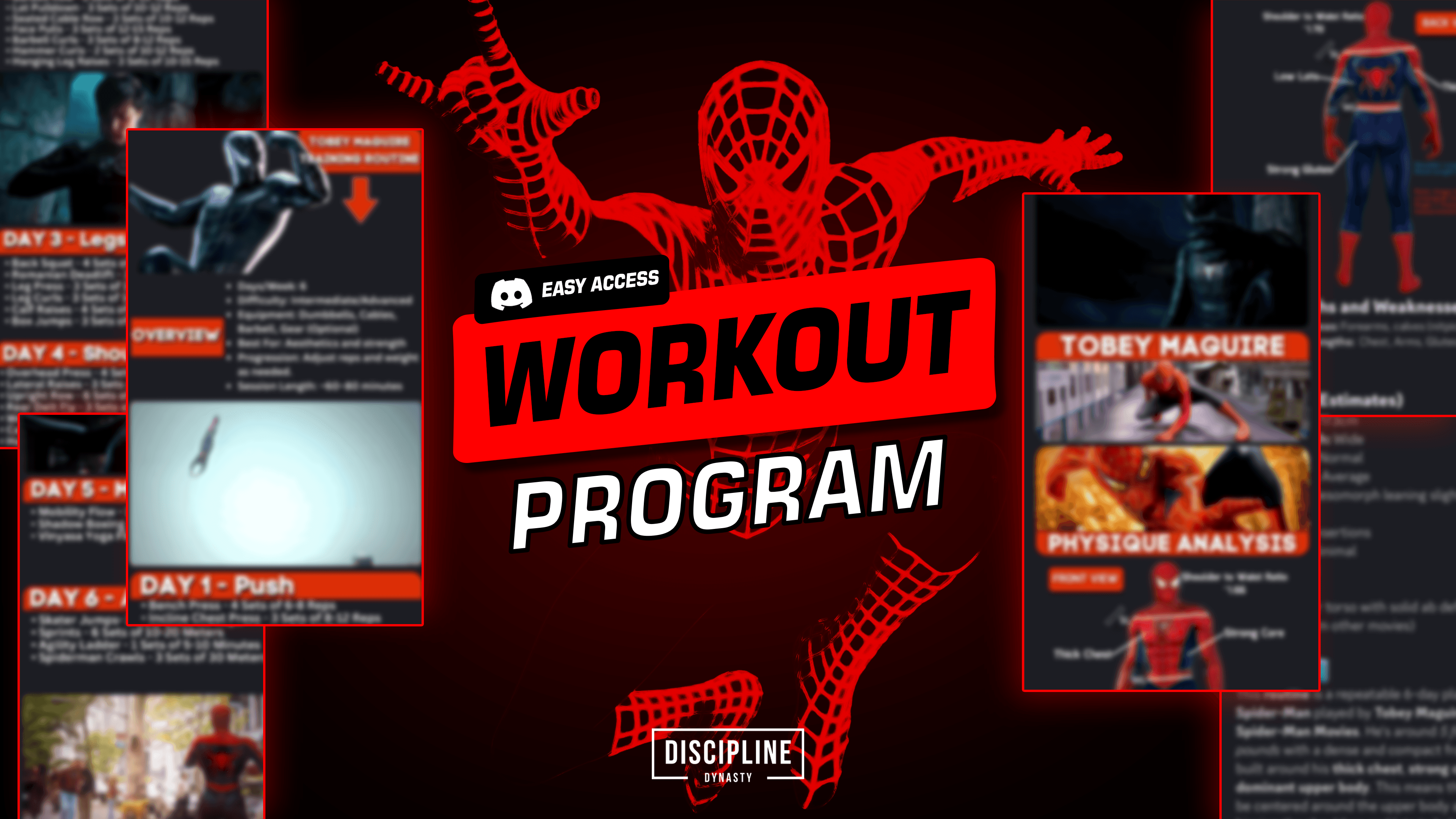 A step-by-step training system built to develop Tobey Maguire’s classic, powerful Spider-Man physique.